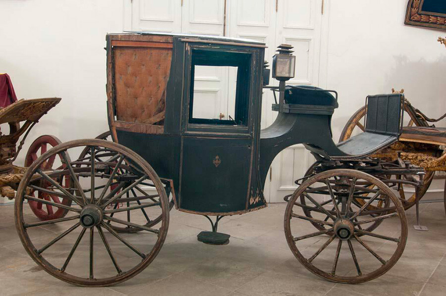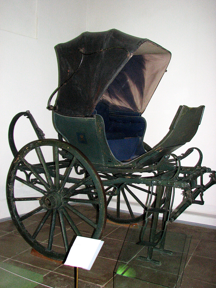 След гибелта на брачна половинка си овдовялата императрица се вози в подобен грациозен файтон с чадър, който ѝ е подарен през 1821 година от датския дипломат. За кочияша не е обособено място за седене, той се вози непосредствено върху коня.