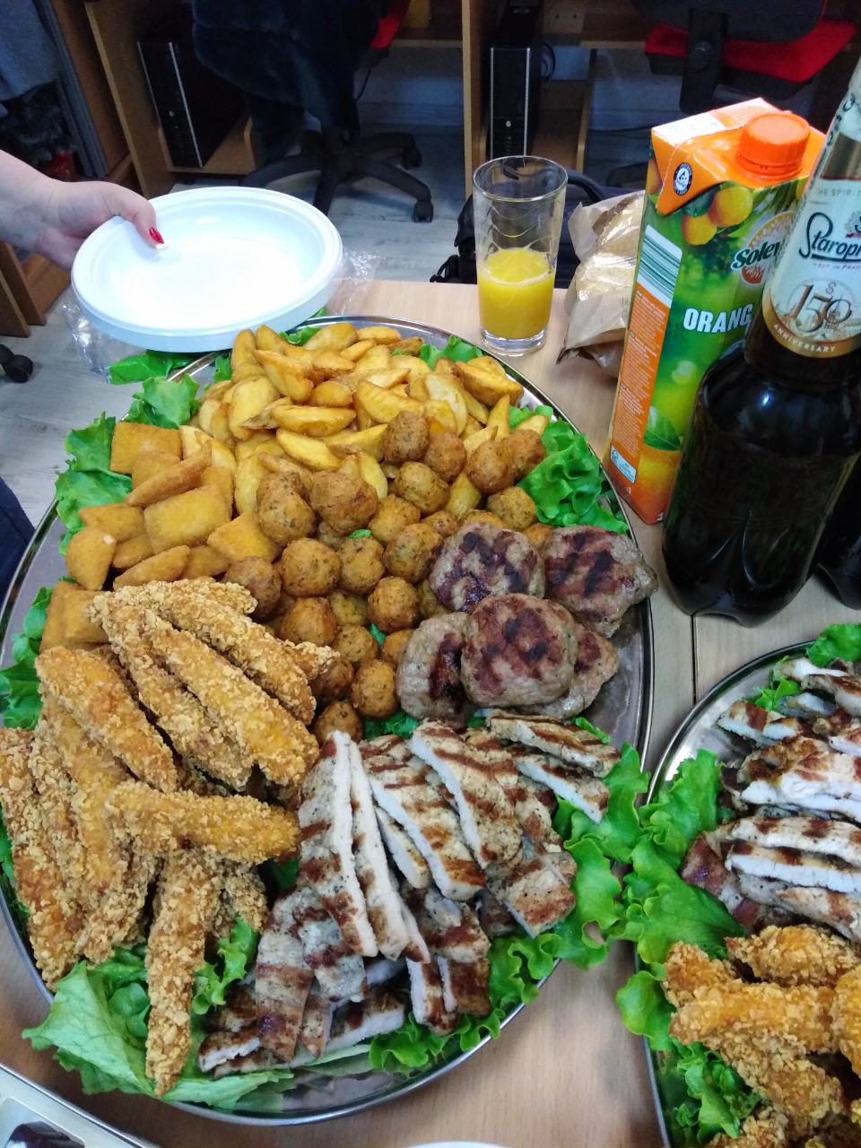 Фирмата предлага разнообразни плата. В месната му селекция ще Ви подготвят пилешка пържола жулиен, мини пържени кюфтенца, свинско контра филе жулиен, пилешки пръчици в корнфлейкс, пиле филе жулиен, домакински телешки суджук и други. В безмесната пък са селектирани сирене, кашкавал, хапки пане, моцарелени хапки, картофи по селски и други.