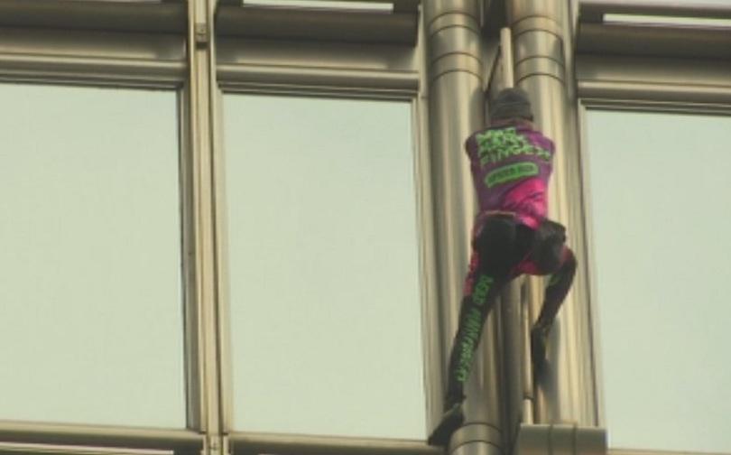 57-годишният катерач, прочут с изкачването на високи здания, този път преодоля 68 етажа във финансовия квартал в изискванията на горещо и влажно време.