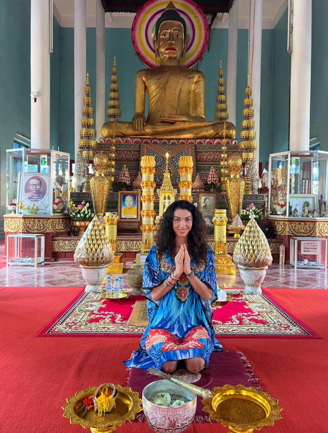 „ Винаги са ме привличали такива места! Будитският храм е ситуиран в центъра на Сием Реал, той е същинско знамение на архитектурата с неповторимата атмосфера и скулптури на Буда. Позициониран покрай реката, храмът е дом на антични будистки обичаи и знак на мира “, разказа молитвената медитация красивата брюнетка.