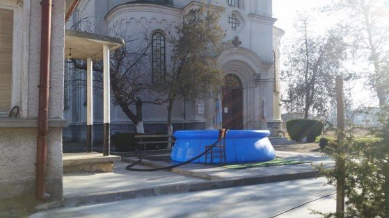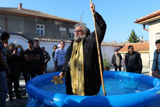 Снимки: Поп от Любимец извади кръста от гумено басейнче пред църквата