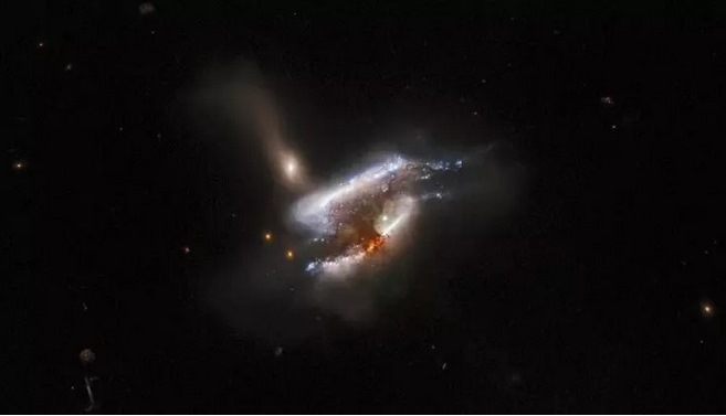 Сблъсъците и сливанията на галактики са много рядко събитие във Вселената. Но още по-необичайни са такива взаимоотношения на три звездни системи едновременно.