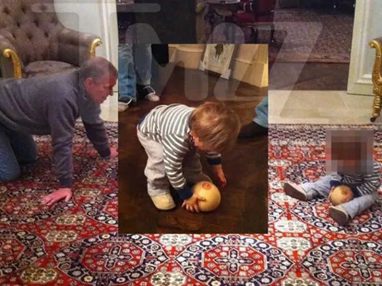 Снимката е оповестена от TMZ. На нея се вижда мъж, разпознат като някогашния принц, коленичил и си играе с дете. Те търкалят топка, от която стърчи женско зърно.