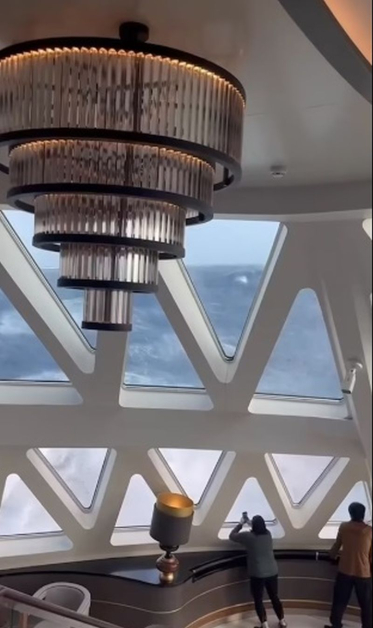 Интернет потребителите обаче бяха възхитени от самата панорама на свирепата стихия и гледките на вълните през панорамните прозорци на кораба.