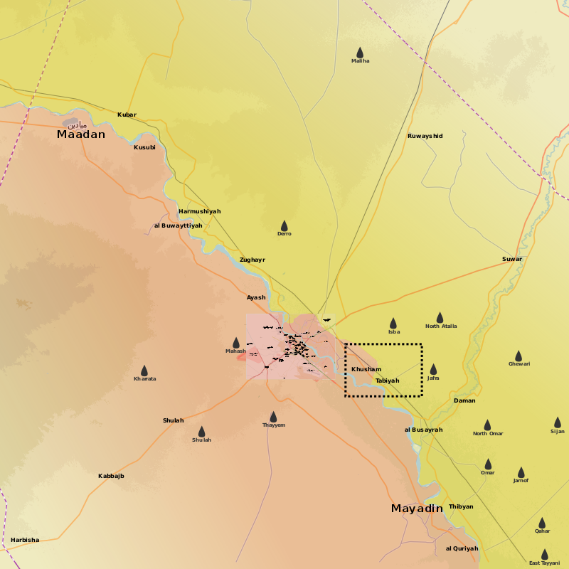 През есента на 2014 година излиза наяве, че Съединени американски щати изпраща сили в Сирия. Една от главните аргументи е и стартът на борбата против Ислямска страна на Ирак, както и силите на Левант. През 2017 година Сирийските Демократични сили съумяват да завладяват Рака благодарение на американците. По целия път не срещат особена опозиция и не престават да натискат към Ефрат. Съединени американски щати и Русия съумяват да разпилян своите единици точно по тази линия.