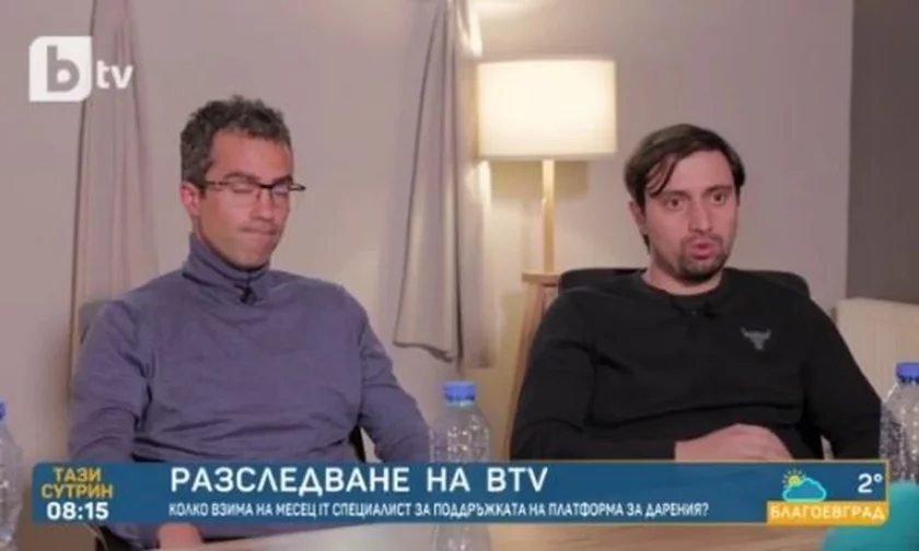 Славчо Славчев и Константин Кръстев, родственик на боса на Nexo Коста Кънчев, по време на злощастното си изявление пред Би Ти Ви