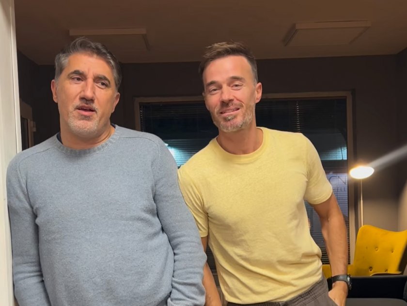 Тези двамата на фотографията (Хавиер Бардем и Брад Пит, б.ред.) се пробват да ни копират мен и Ники Илиев, нищо, че ние сме като от Али експрес, само че по тази причина пък и техния филм като нашия - финалните подиуми са снимани в Абу Даби.