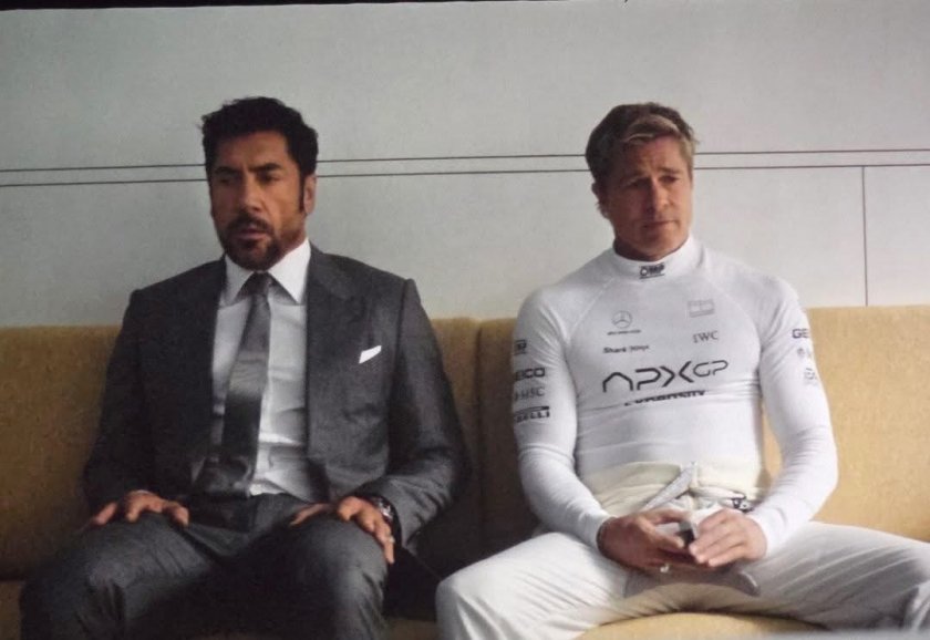 Хавиер Бардем и Брад Пит в кадър от " F1 "