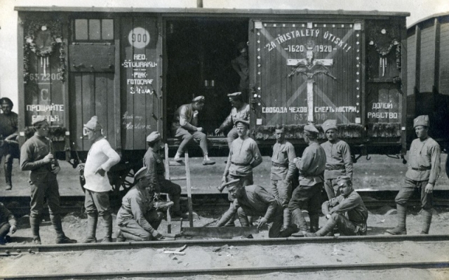 Чехите се движат в напълно различен ред. Съгласно съществуващите правила за евакуацията на чехословашкия корпус са нужни 1 000 двуосни вагона, за тях са разпределени 2 000 вагона, само че чехите, които контролирахт железниците, изземват 20 000 вагона за своите потребности - повече от 50% от наличния преносим състав в Сибир.