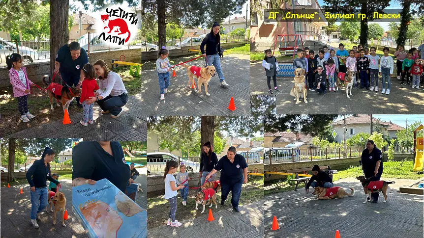 В края на месец май 2024 година в границите на два следващи дни в ДГ „ Слънце “, гр. Левски, гостува Фондация „ Четири лапи “ - интернационална организация за отбрана на животните. Събитието провокира огромна наслада и неспокойствие за всички деца в детската градина.
