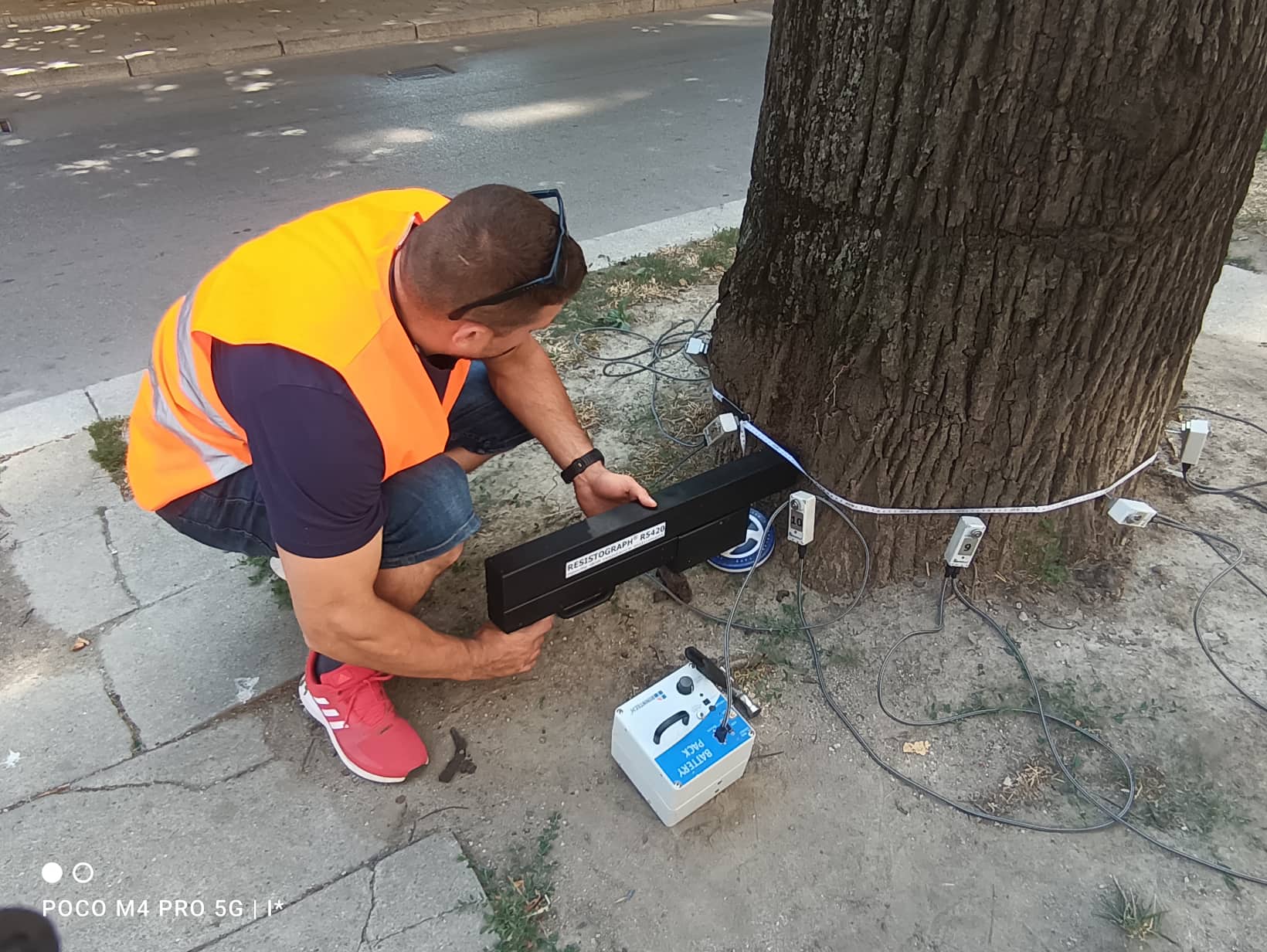 Преди това през днешния ден стартира проучване на липата за непоклатимост на стъблото със профилирана инсталация – арботом и резистрограф. Целта е да се ревизира за възможни промени в плътността на дървесината на стъблото и за процеси на изгниване.