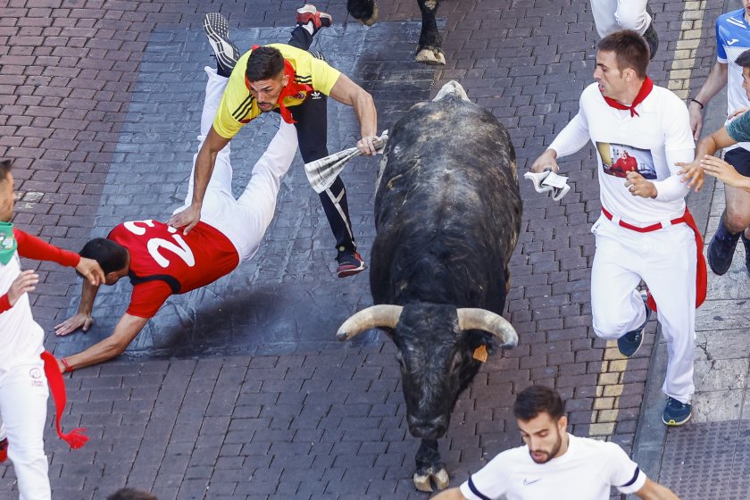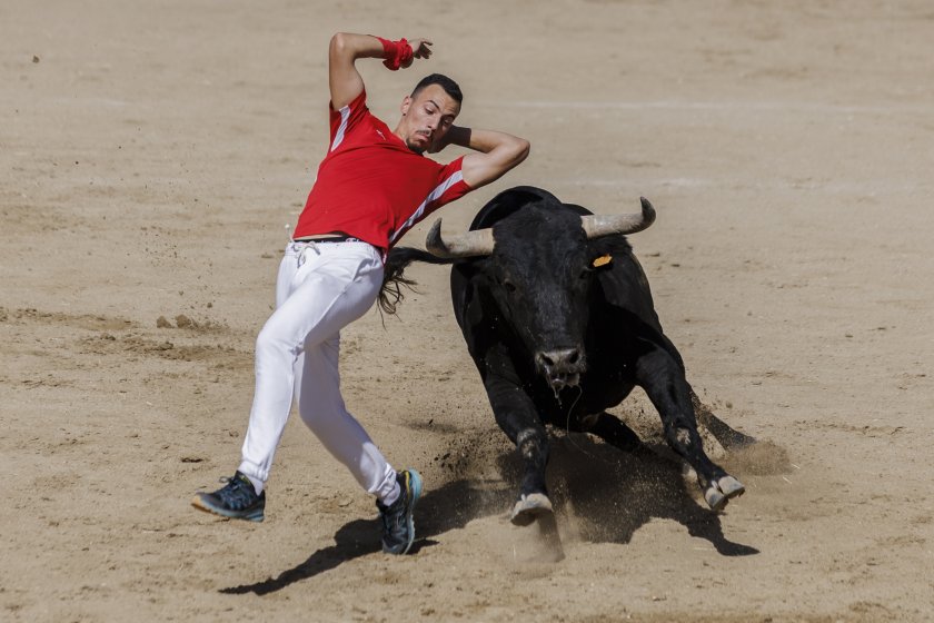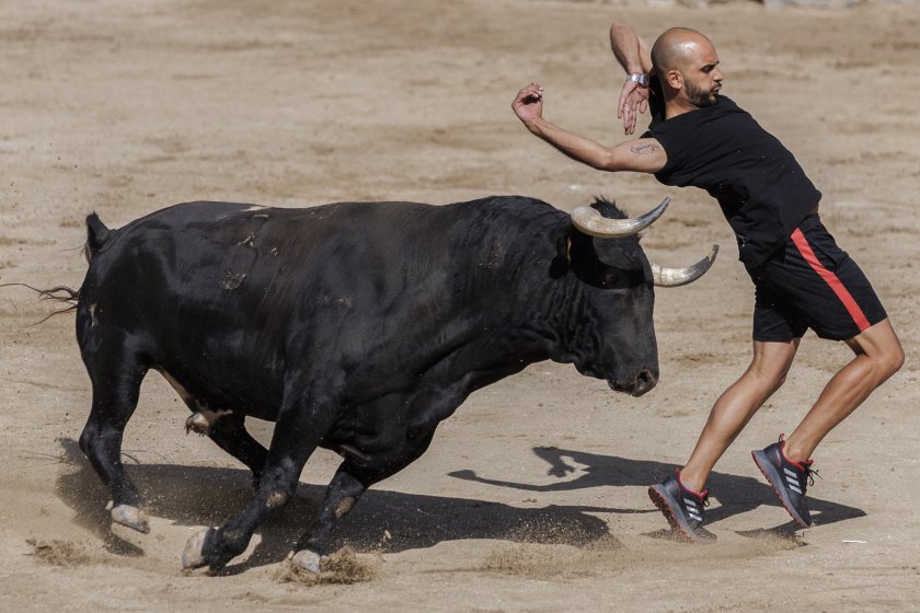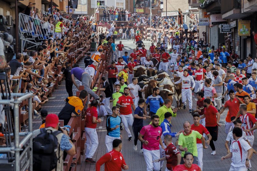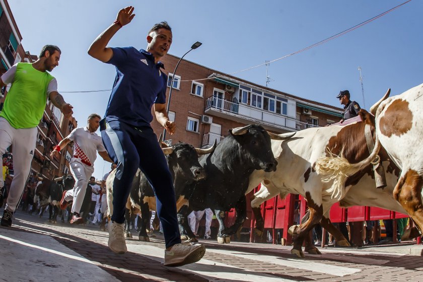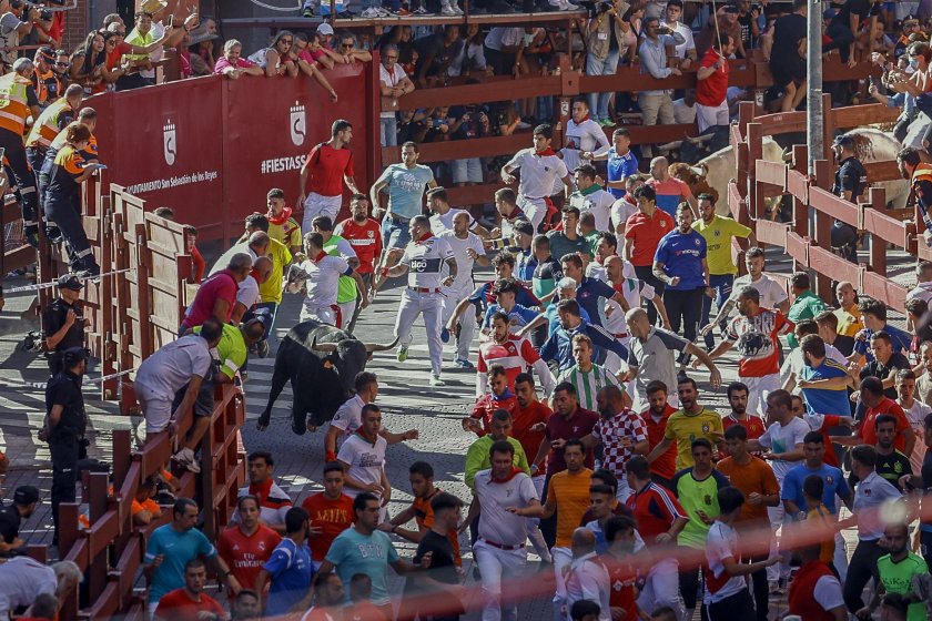 В Мадрид преди седмица се организира фестивалът на Сан Себастиан де Лос Рейес. Много смели мъже и тази година се впуснаха в конкуренцията с бикове по улиците на града.