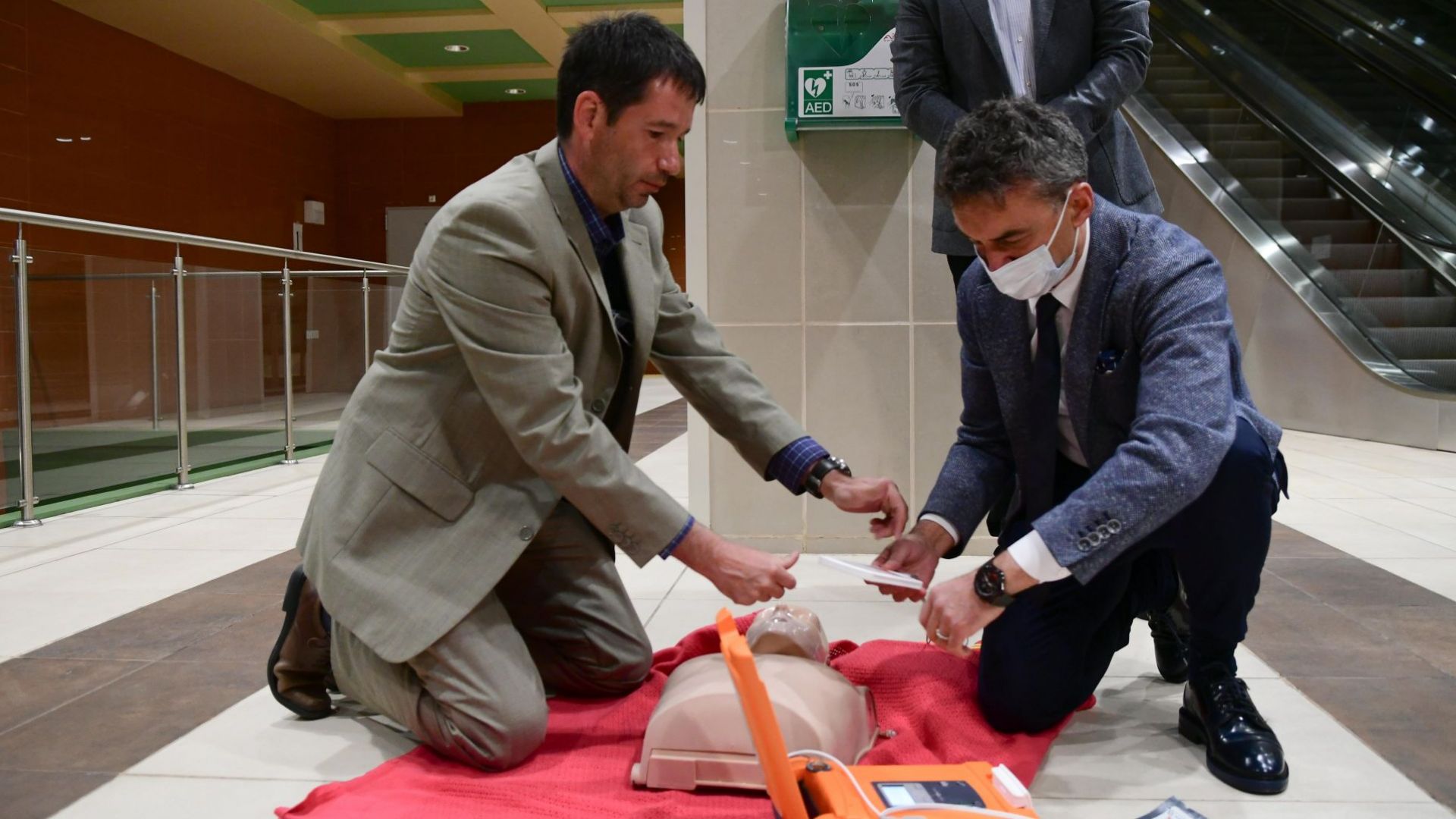Проф. Иво Петров демонстрира как се работи с дефибрилаторите в метрото