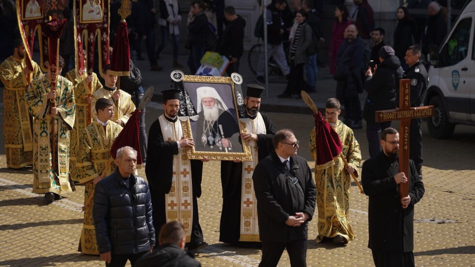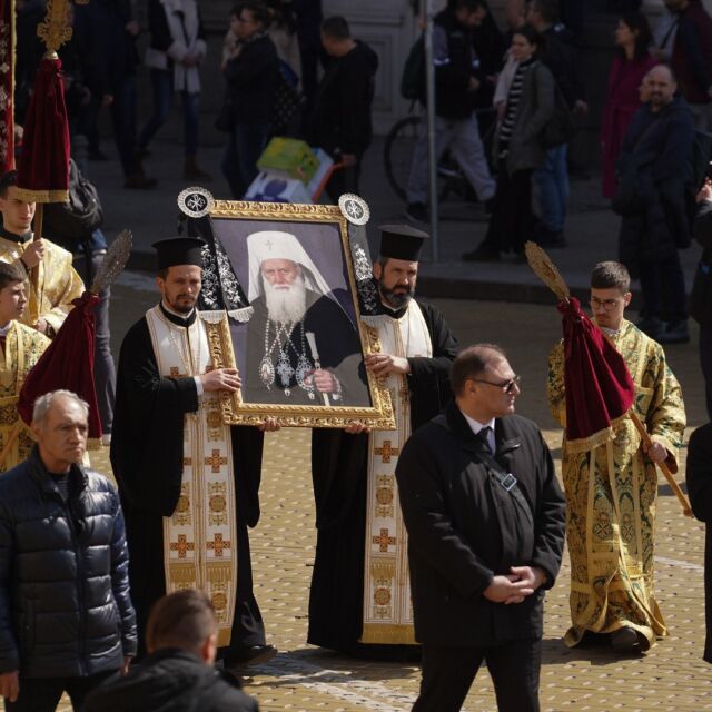 С литийно шествие тленните остатъци на нашия нравствен татко бяха пренесени от патриаршеската катедрала „ Св. Александър Невски " до храм „ Св. Неделя " с помощта лафет.