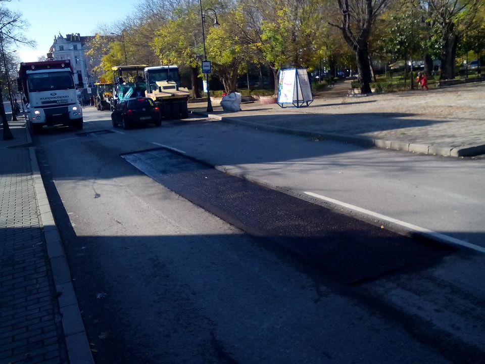 В момента се кърпи булеварда край градинката „ Севастопол “ във Варна.