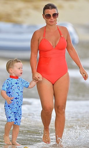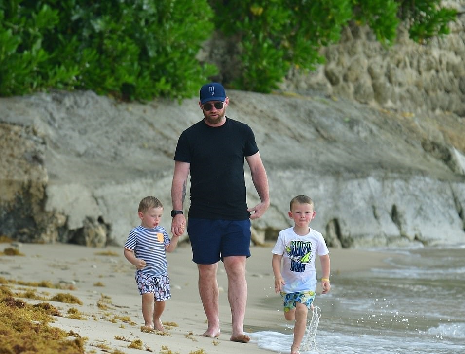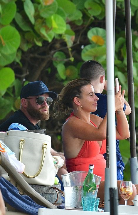 Напористите папараци съумяха да снимат брачната половинка на Уейн Рууни до момента в който се разхожда под жаркото слънце на плажа в компанията на своите най-малки синове. Тя добави към визията си огромни обеци и слънчеви очила, които прикриваха огромна част от лицето й.