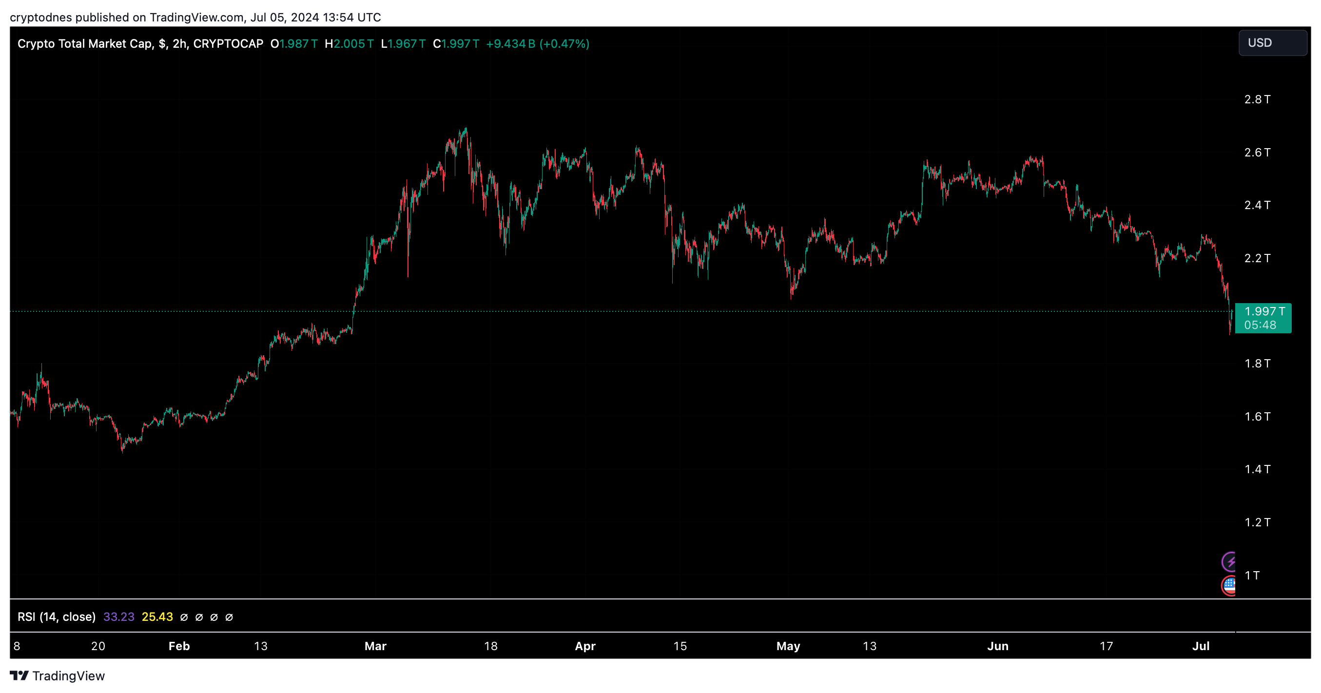 След този спад световната пазарна капитализация на криптовалутите падна под $2 трилиона за първи път от края на февруари, само че все още на писане на публикацията (5 юли, 16:50 ч. българско време) леко се възвърне и възлиза на $1.99 трилиона.