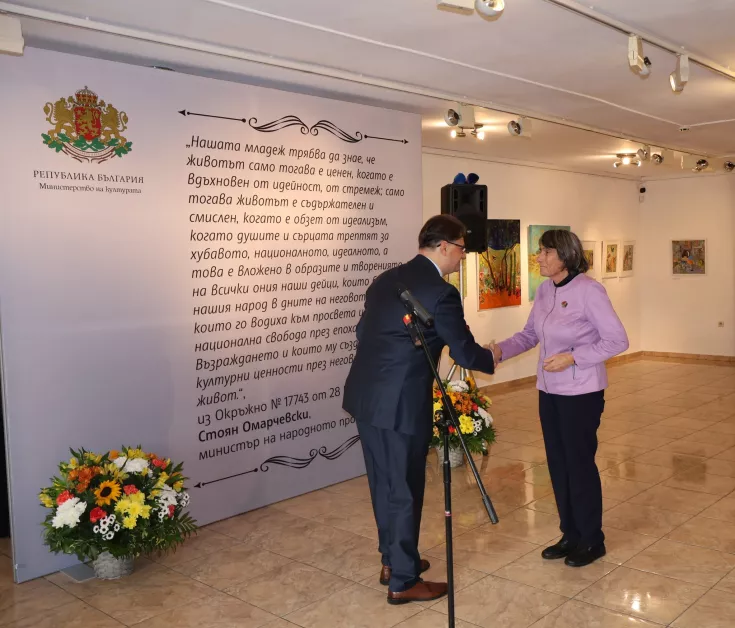 С премия на Министерството на културата за извънреден принос в развиването и популяризирането на българската просвета и изкуство и във връзка 1 ноември – Ден на националните будители „ Златен век “ – огърлие и грамота са отличени: