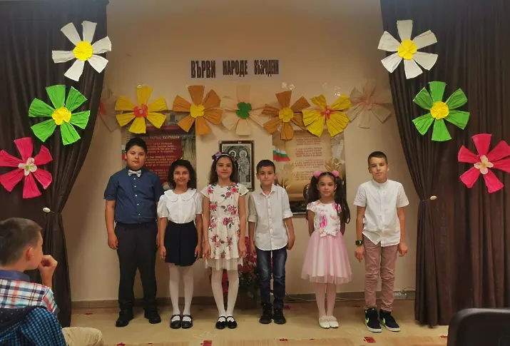 В празничната стратегия взеха присъединяване възпитаници - ученици на Читалището. Те извършиха песни и стихове, възхваляващи делото на Кирил и Методий, както и стихотворения за буквите, за книгата, за учителите, за празника 24 май.