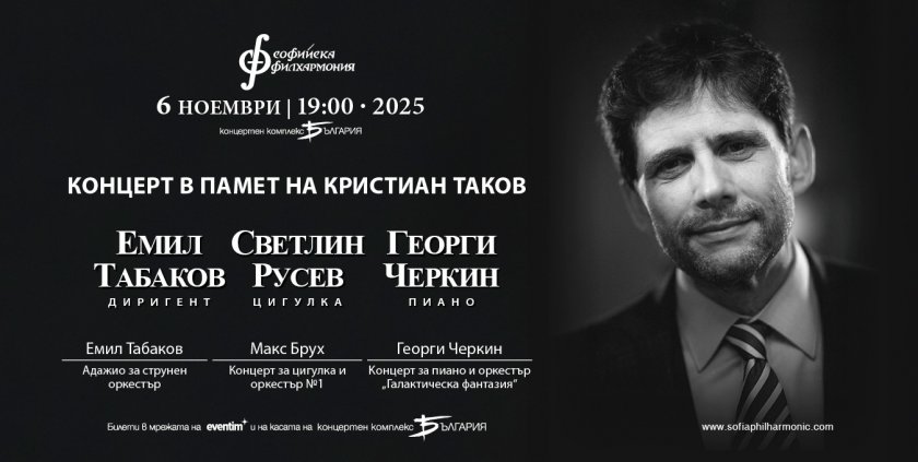 Този концерт е не просто културно събитие, а празник на полезностите, които Кристиан Таков отстояваше: истина, честност, независимост на мисълта и мощ на духа ", споделят от Софийска филхармония.