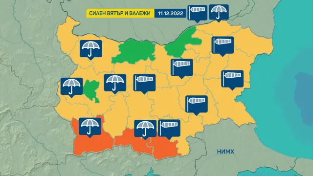 Оранжев код за обилни превалявания е разгласен в областите Благоевград, Смолян и Кърджали. Там количествата на преваляванията ще са сред 35 и 60 литра на квадратен метър.