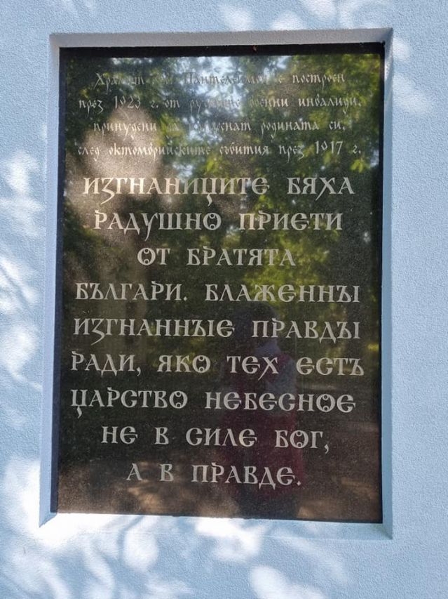 Храмът „ Св. Пантелеймон " е издигнат през 1923 година от съветските военни инвалиди, принудени да изоставен Родината си след октомврийските събития през 1917 година Точната дата не е непокътната в архивите. Знае се обаче, че това е станало през 1923 година – годината, в която е издигнат и първият храм на белоемигрантската общественост в Париж в предградието " Кламар ". Това са първите два храма, съградени от прокудените руснаци. „ С този факт " Св. Пантелеймон " става още по-ценен, още повече, че в България белоемигрантите намират своя втора татковина ", споделя отец Димитър.