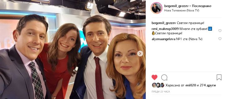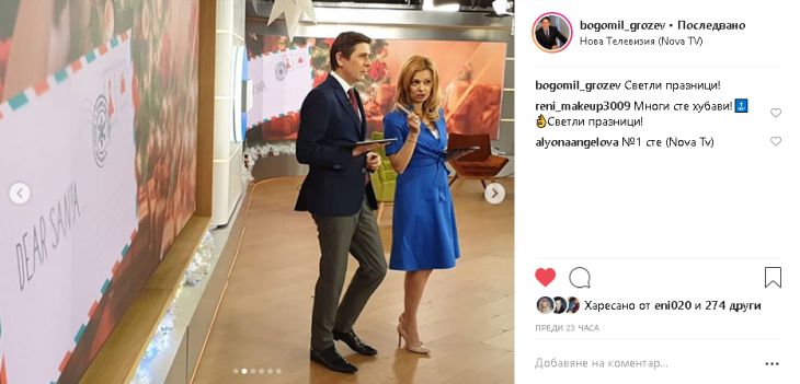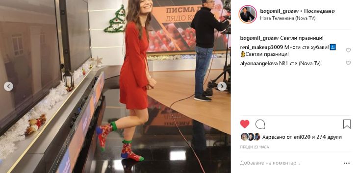 В Нова телевизия към този момент е напълно празнично. Коледното въодушевление е превзело всички студия и коридори на медията. За това свидетелстват фотоси на Богомил Грозев, които обаче разкриват и още един доста забавен подробност.