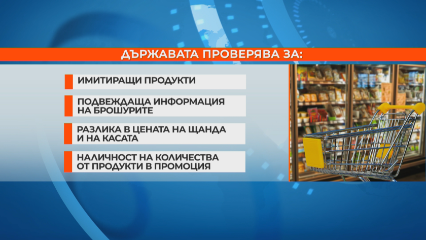 Проверява се и за имитиращи артикули, подвеждаща информация на брошурите, разлика в цената на щанда и на касата, наличност на количества от артикули в промоция. Санкциите доближават до 50 000. На прицел са огромните магазини.