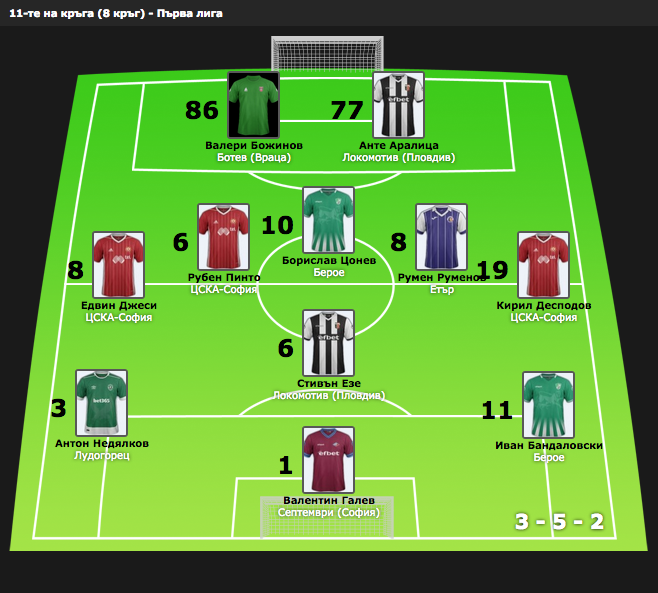 Идеалният отбор на Първа лига за изминалия кръг