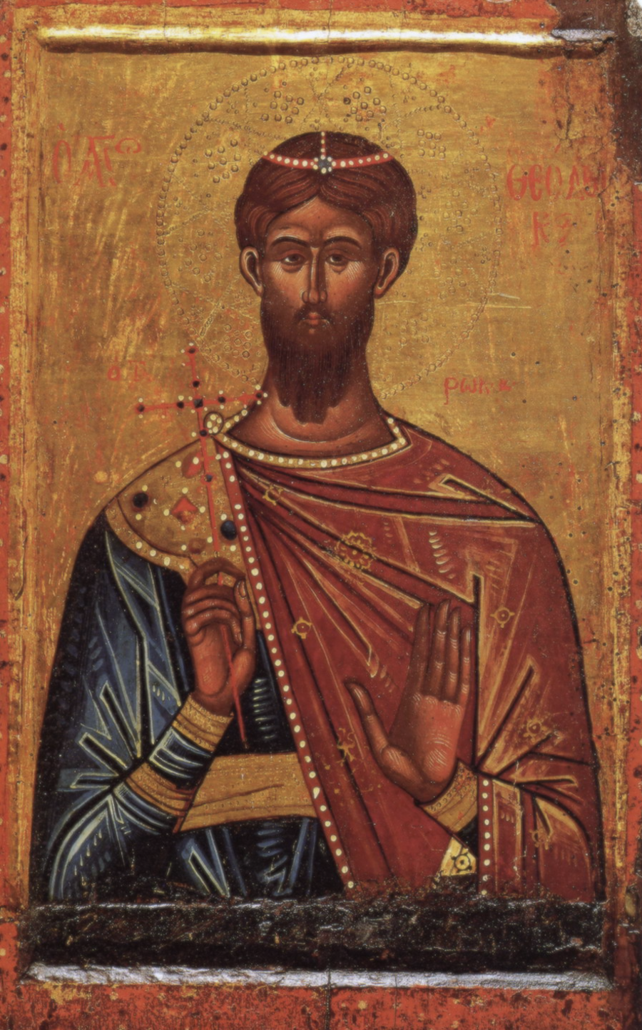 („ Мъченикът войник Теодор Тирон “, първа половина на XVII век, Северна Гърция, дърво (ковчег), Пушкински музей, Москва)