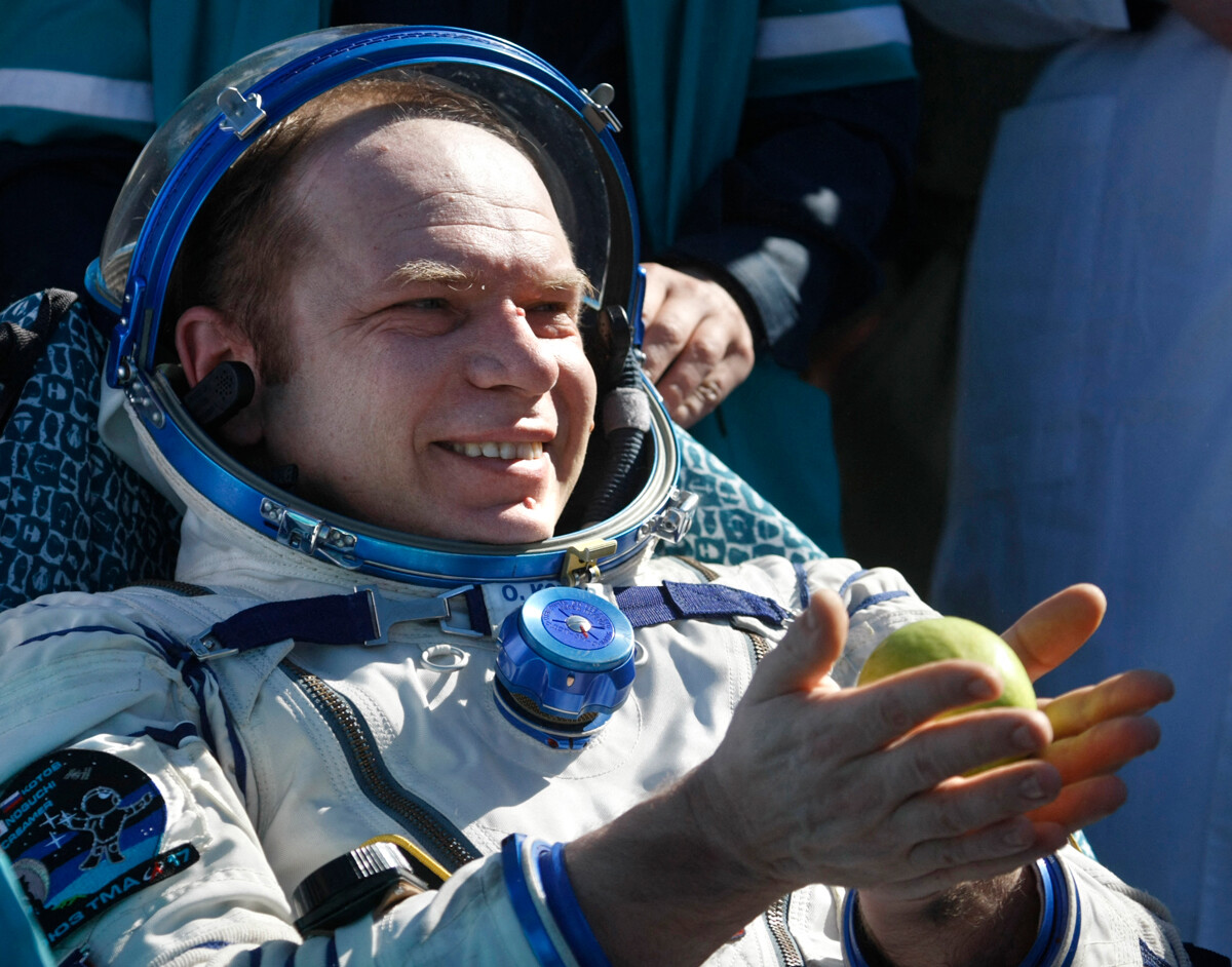 „ [Искаше ми се] да вдишам, първо, въздуха на родната степ, второ, аромата на алматинския апорт (сорт ябълки – бел. ред.) след техническия въздух, който дишахме 126 денонощия, това беше благополучие “, той. Оттогава се съблюдава този обред.