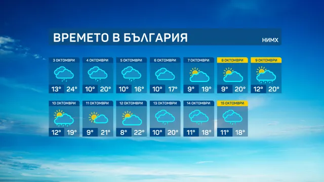 В първия ден от октомври – събота, ще продължи да духа южен вятър и ще се задържи много топло с температури сред 26° и 31°.