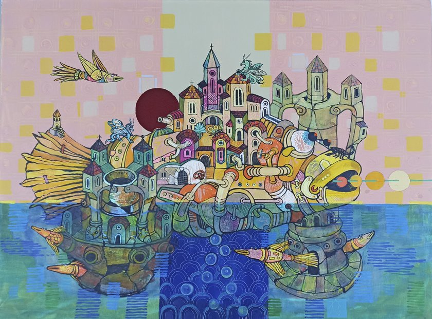 " Безспорно, един от най-оригиналните български художници, Пламен Легкоступ още веднъж ни омагьосва със своите калейдоскопични картини. Красотата и приказността на дворците и къщите върху платната има за основа старините на Търново, Пловдив и друга българска приемственост. Определено се постанова и блестяща екзотика. А рибата, тя очевидно е нещо свещено за създателя, тя пулсира в доста от картините, като е натоварена с обилие от знаци, емблематични знаци и мистерии. Сякаш носи света върху себе си. Творбите ни втурват в притчовата приказка на една огромна креативна фикция ", споделя галеристът Краси Алексиева.