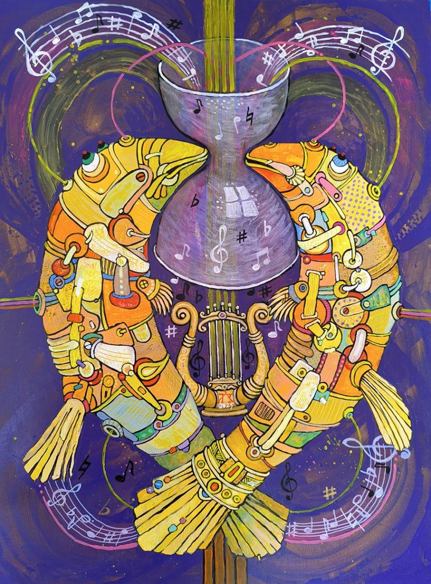 Основен цикъл са рибите. Те описват доста, макар че са безмълвни. Говорят сякаш за историята, а пречупват човешките взаимоотношения през погледа на съвременника. Всяка една риба е и алегория, заплувала нанякъде, носи нещо на гърба си, среща друга риба. Друг цикъл са „ Античните съдове “, а трети – „ Средновековните градове “.