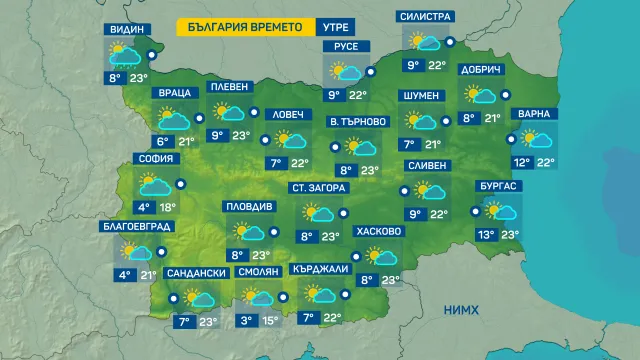 Очакваната минимална температура за София на следващия ден е 4 градуса, оптималната: 18 градуса.