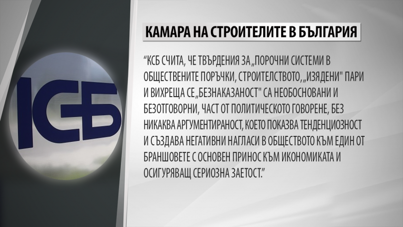 © Българска национална телевизия Камарата счита, че изказванията за „ порочни системи в публичните поръчки, строителството ", „ изядени " пари и вихреща се „ безотговорност " са голословни и безотговорни.