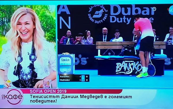 В предаването " На кафе " пуснаха запис от вчерашния тенис мач на руснака Даниил Медведев, при който той завоюва купата на тенис шампионата от сериите АТР 250 в София.
