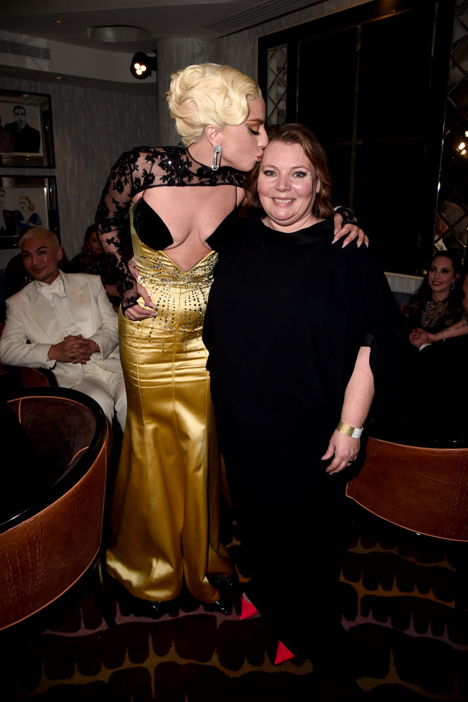 В рамките на няколко часа Лейди Гага съумя да участва на два звездни червени килима, за две разнообразни кино гала и в два разнообразни тоалета, естествено.За премиите БАФТА Гага се облече в рокля на Ralph Lauren в емералдово зелено и с дълъг шлейф. Според информация, подадена от марката, са били нужни 150 часа ръчен труд за изработването на роклята, както и 50 метра кадифе и коприна.