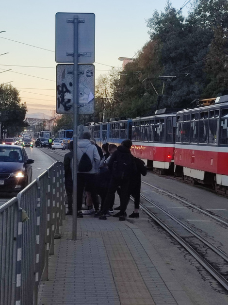 Във Фейсбук жена показа, че върви надпис съобщаващ, че трамвай 22 в посока Кр. поляна ще върви краткотрайно към Опълченска. Трамвай 11 също не върви към Красна поляна. Жената споделя, че е предходна полиция и кола за спешна помощ.