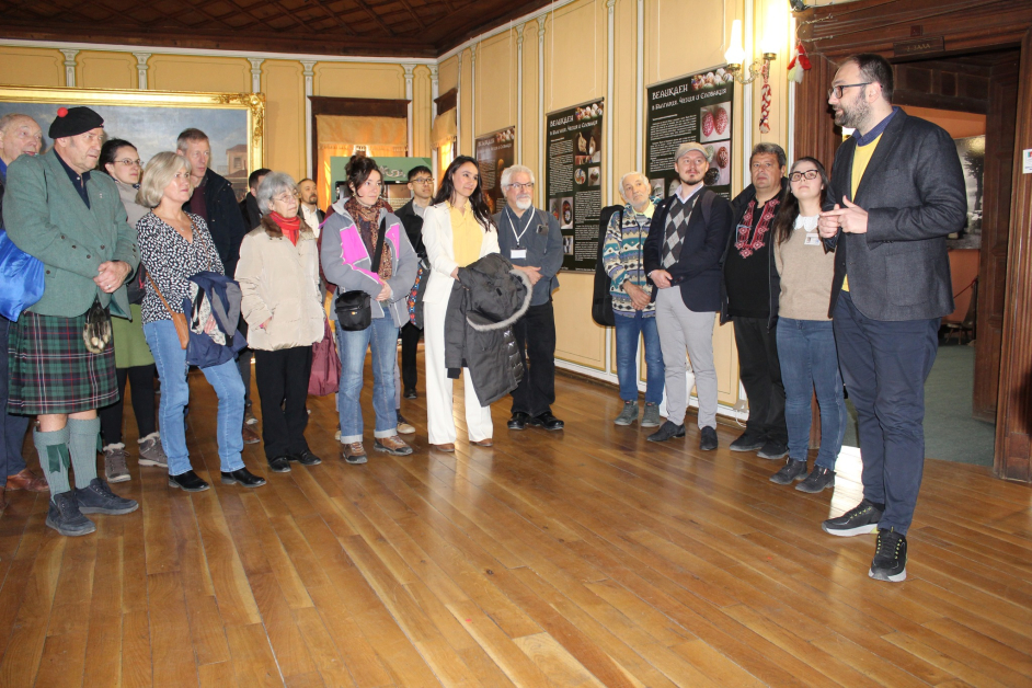 В третия ден от програмата на конференцията, гостите от чужбина, водени от гайдаря Петър Янев - ръководител на БНГА, посетиха Регионалния етнографски музей, където бяха посрещнати от заместник-кмета по просвета, археология и туризъм на община Пловдив - Пламен Панов и шефа на Регионалния етнографски музей - доц.д-р Ангел Янков.