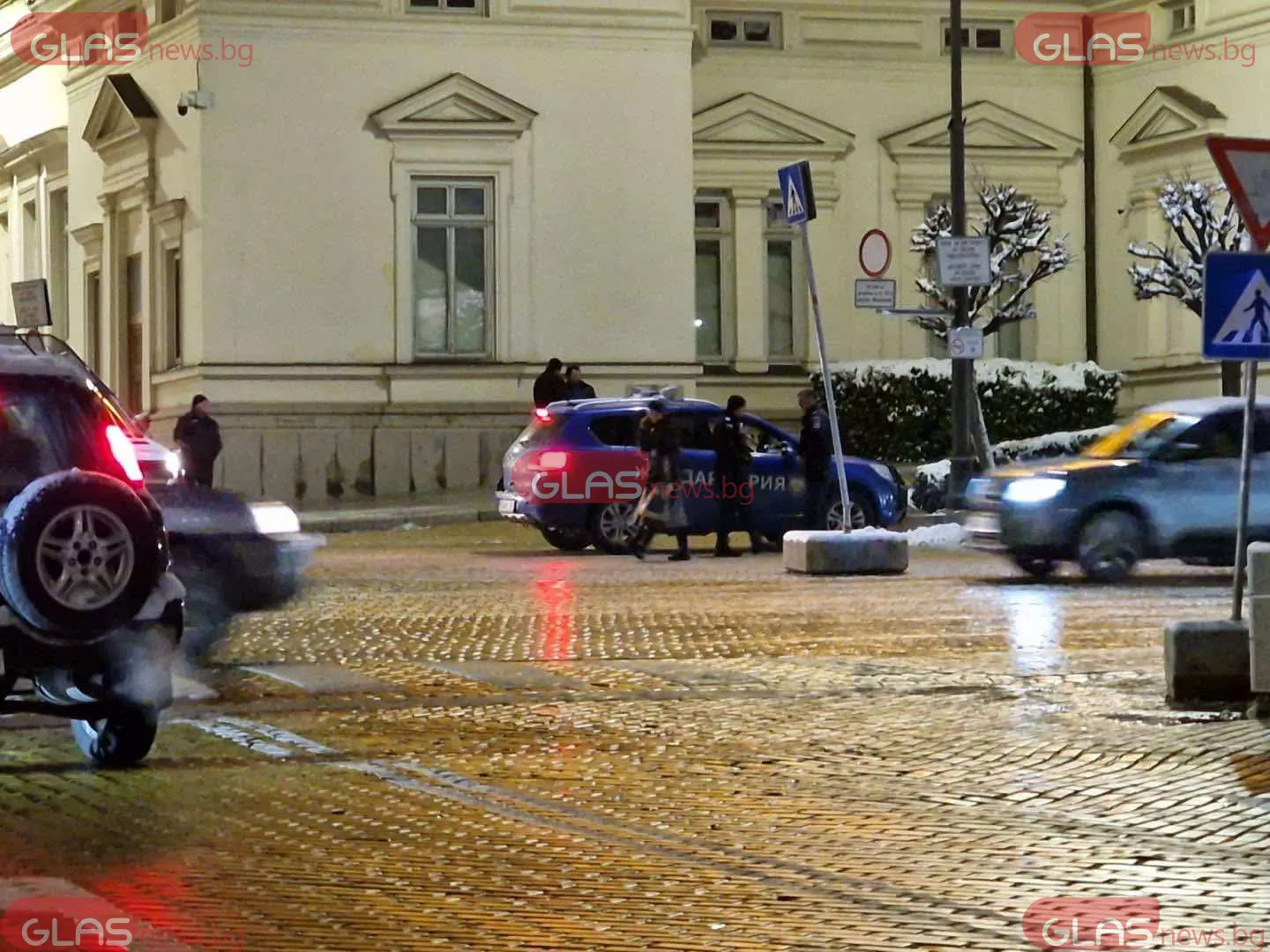 В региона на остарялата постройка на Народното събрание са видяни два автомобила на престъпна лаборатория и няколко полицейски коли, споделиха за GlasNews читатели.