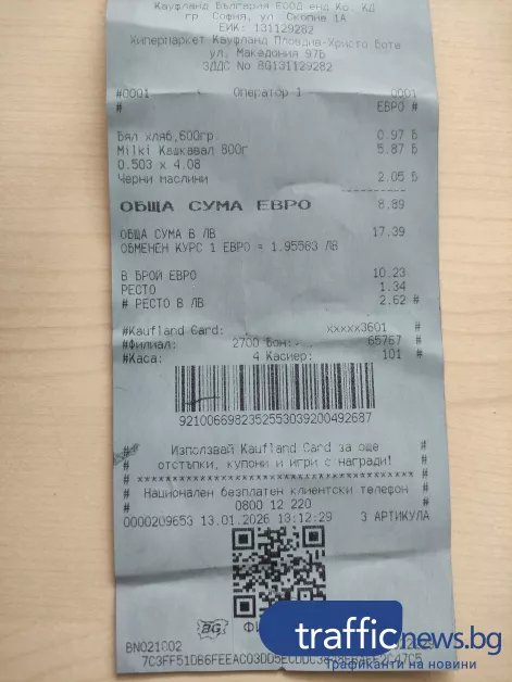 " При осъществяване на покупка на стойност 8,89 евро или 17,39лв. и заплащане с 20 лв. банкнота(или 10,23 евро), ми бе върнато още веднъж ресто в български левове(вместо скромните 1,34 евро),както и през вчерашния ден на 12.01.2026г., макар че в касата има налични евро! Това опонира на българското законодателство, което регламентира, че при съществуване на евро в касата, рестото би трябвало да бъде върнато в евро. Освен това, следя, че на всички каси и на всички клиенти, които заплащат както в левове, по този начин и в евро (като множеството заплащания са в евро), им се връща ресто единствено в левове с обяснението от страна на личния състав, че нямат евро в касата ", написа до медията ни Димитър Колев.