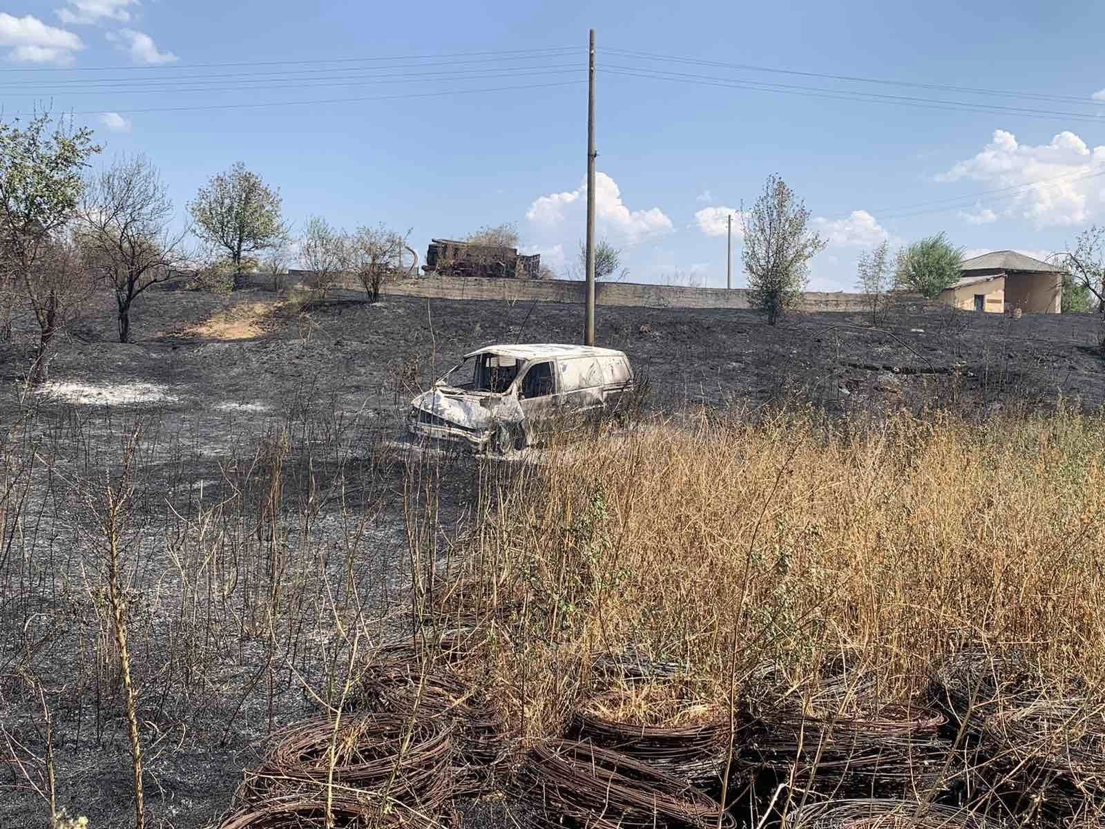 След привършване на гасителните дейности от екипи на противопожарната работа е открито, че в землището на село Сухозем пламъците се трансферирали и обхванали и селскостопански двор. Опожарена е солидна сграда, употребена от локална земеделска кооперация, както и два трактора, дробилка за клони и 100 кубика дървени колове.