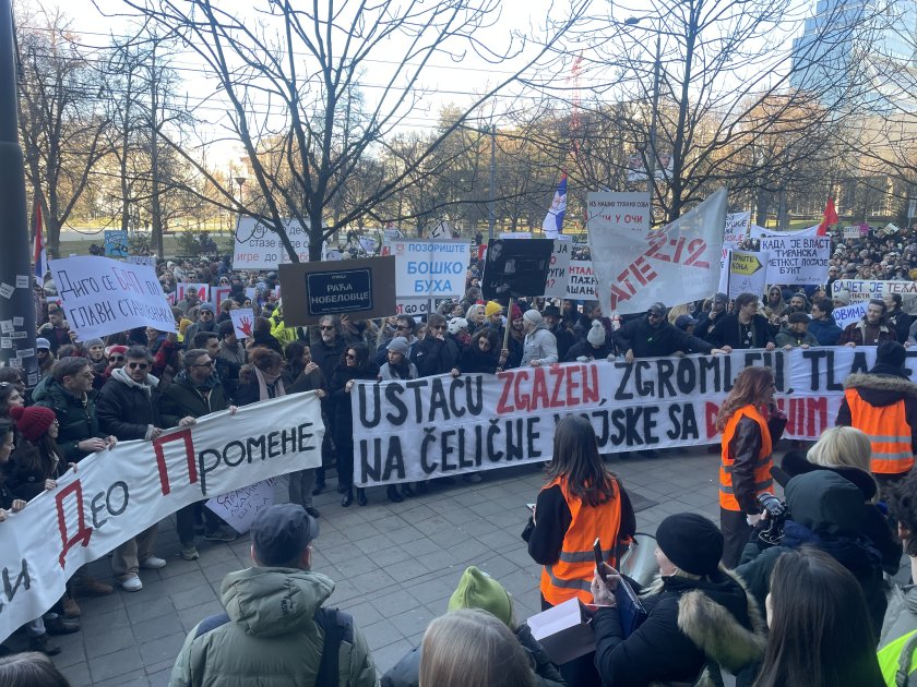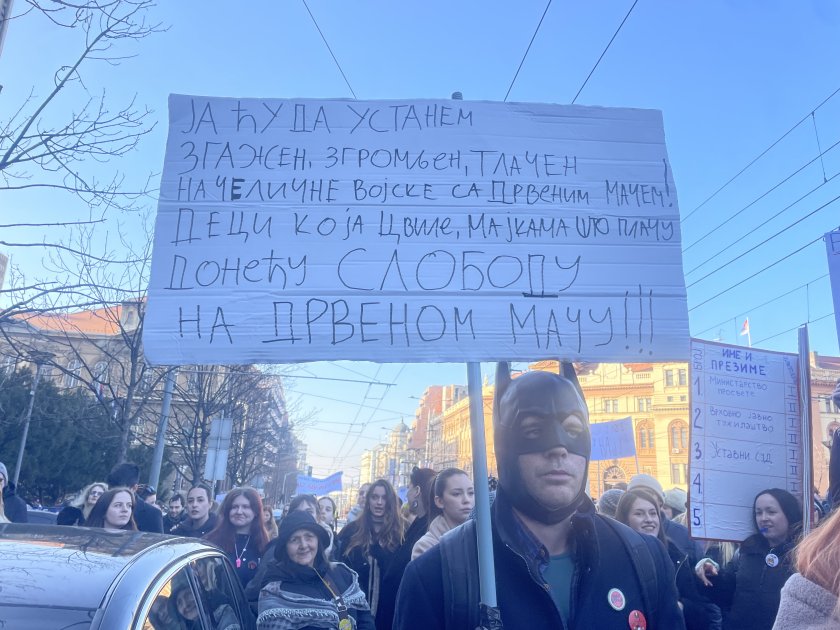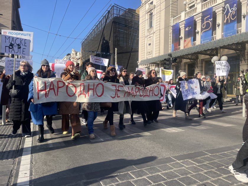 В Сърбия антиправителствените митинги не стопират и през днешния ден. Докато белградските студенти потеглиха на протестно шествие до отдалечения на 140 км Крагуевац, в Белград на улицата излязоха актьорите.