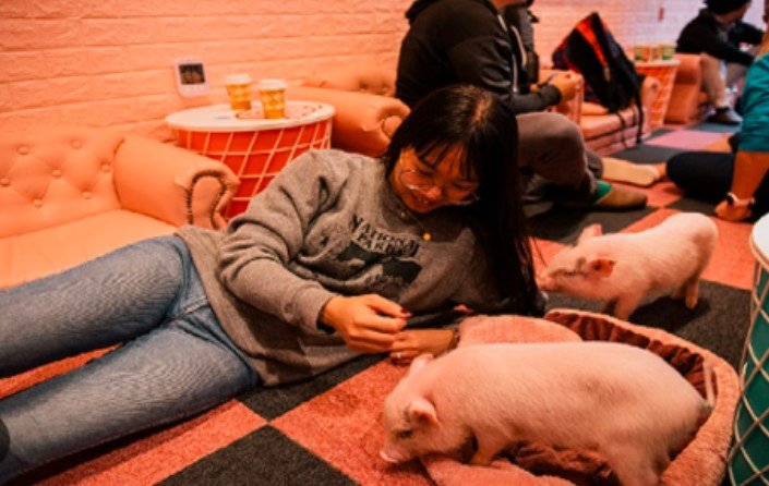 Седемте прасенца в кафенето са единствено на месец и половина и в този момент тежат 2-3 кг, само че гостите би трябвало да побързат. Малките им домакини ще пораснат десетократно с възрастта.
