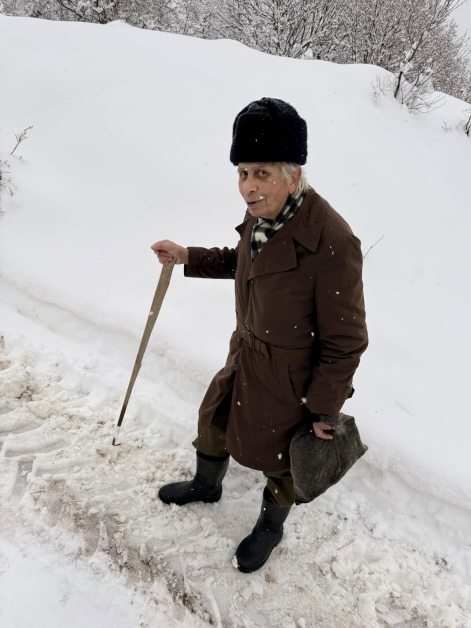 Въпреки че е на седемдесет години, този дядо прекосява четири часа път през снега от селото до основния път, където пътува на автостоп до най-близките обитаеми места. За дядото, споделил усмивката си, само че и тъгата за изчезващия живот в родните му Родопи, описа Светльо Христов в обществените мрежи.
