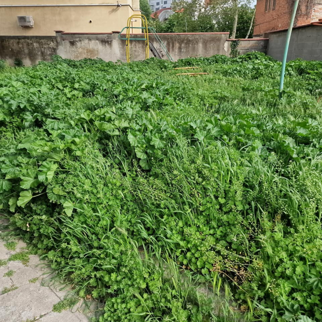Няма пързалки, има коприва. Няма наслада, има риск. Високата трева е освен грозна картина, само че и евентуална опасност — кърлежи, змии и куп други рискове дебнат всяко дете, дръзнало да се промъкне сред зелените стени.