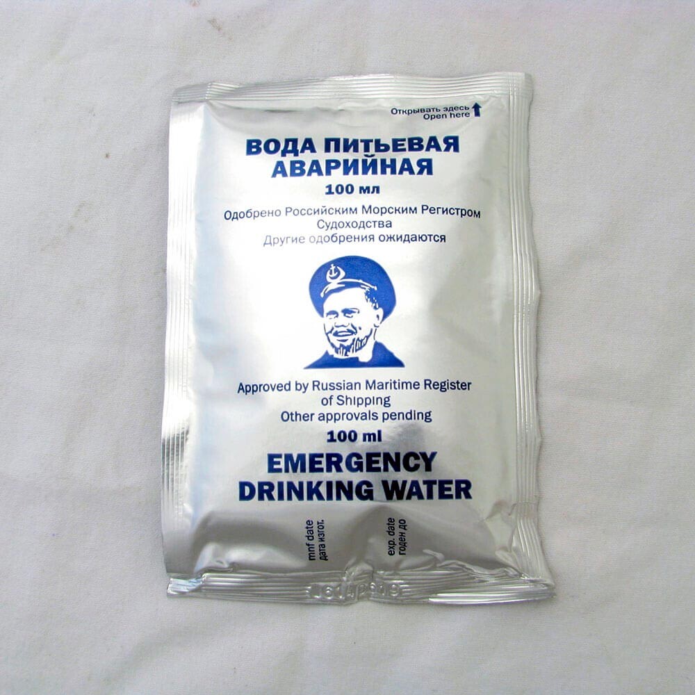 Днес моряците и подводничарите също имат ресурси от питейна вода за незабавни случаи, само че тя към този момент не е под формата на консерви, а в опаковки от ламинирано фолио, които са доста по-леки. Една опаковка съдържа 100 мл вода. Опаковката може да се съхранява при температури сред -35 и +65 градуса в продължение на пет години. Дневната норма остава същата – половин литър (5 пакетчета) на човек дневно, като не се предлага тази вода да се пие през първия ден.