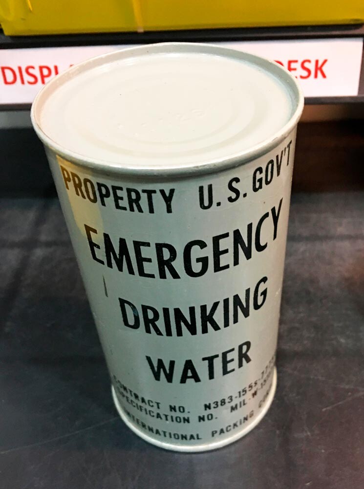 „Не пийте през първите 24 часа. Събирайте и пийте дъждовна вода, пълнете с нея всички налични съдове. В краен случай използвайте консервирана вода“, гласи надписът върху кутията. „За да получите вода, направете две дупки в капака на консервата с нож за консерви. Ножовете за консерви са в кутия, в торбичка с консумативите.“