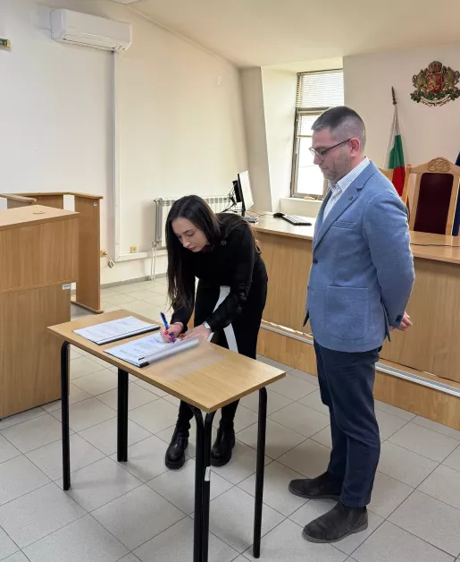 Новите магистрати подписаха Акт за встъпване в служба „ Съдия “ в Районен съд - Пловдив в наличието на И.Ф. Председателя на районен съд – Пловдив господин Иван Бекяров и съдиите от районен съд – Пловдив.